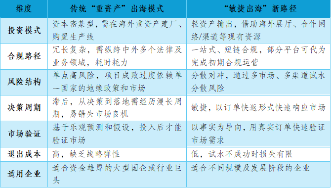 综上,在当前地缘政治、贸易政策、监管环境剧烈变化的情况下,传统“重资产+长链条”的出海模式正陷入困境:合规周期长、资金门槛高,企业往往尚未等到业务收获就已经背上了沉重包袱;一旦遇上政策风云突变或东道国变脸,前期投入可能顷刻间灰飞烟灭。这种结构不改变,企业在海外的每一步努力,都可能使其陷入更危险的境地。